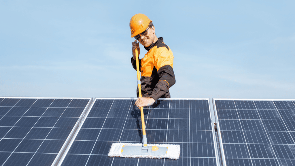 - Water fed pole, Boar hair brush, cleaning of all exterior Solar panel surfaces with on-site generated deionized water.